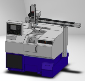 - X軸350mm、Z軸350mmのロングストロークで、ドリルユニット、タップユニットなどを搭載して複合加工が可能